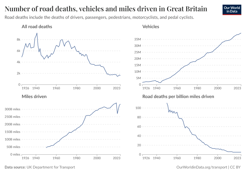 Hannah Ritchie (2025) - “How Britain built some of the world’s safest roads” Published online at OurWorldinData.org. Retrieved from: 'https://data-wdi-depsupdate.owid.pages.dev:8789/20260211-174736/britain-safest-roads-history.html' [Online Resource] (archived on February 11, 2026).BibTeX citation