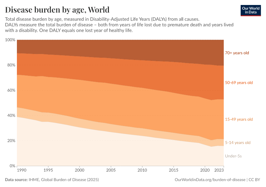 Max Roser, Hannah Ritchie, and Fiona Spooner (2021) - “Burden of Disease” Published online at OurWorldinData.org. Retrieved from: 'https://data-wdi-depsupdate.owid.pages.dev/burden-of-disease' [Online Resource]BibTeX citation