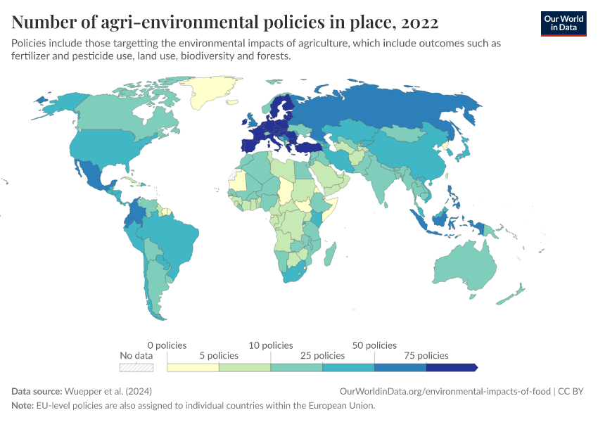 Hannah Ritchie (2024) - “How effective are policies in reducing the environmental impacts of agriculture?” Published online at OurWorldinData.org. Retrieved from: 'https://data-wdi-depsupdate.owid.pages.dev:8789/20260301-083443/effective-policies-reducing-environmental-impacts-agriculture.html' [Online Resource] (archived on March 1, 2026).BibTeX citation