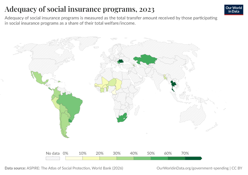 “Data Page: Adequacy of social insurance programs”. Our World in Data (2026). Data adapted from ASPIRE: The Atlas of Social Protection, World Bank. Retrieved from https://data-wdi-depsupdate.owid.pages.dev:8789/20260301-083443/grapher/adequacy-of-social-insurance-programs.html [online resource] (archived on March 1, 2026).How to cite this data