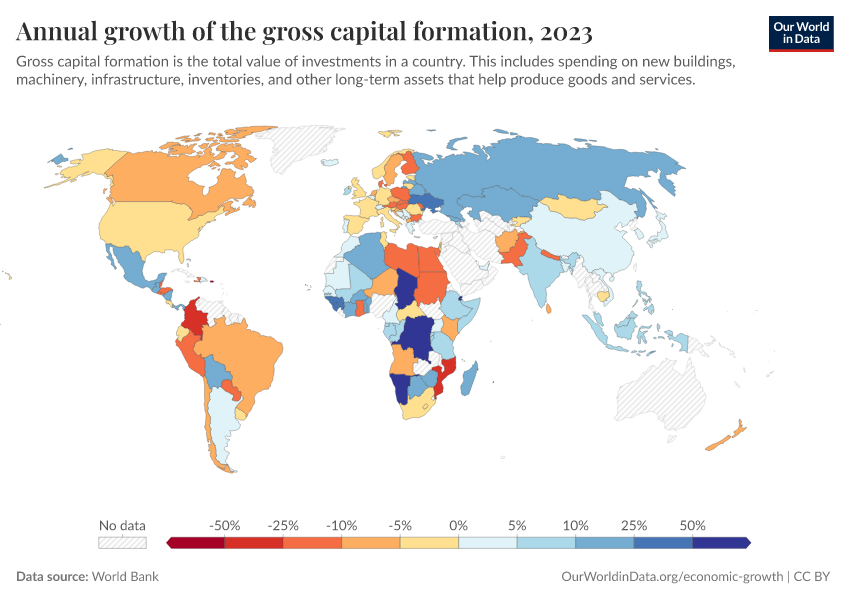 World Bank – processed by Our World in Data. “Annual growth of the gross capital formation” [dataset]. World Bank, “World Bank national accounts data, and OECD National Accounts data files.” [original data]. Retrieved March 2, 2026 from https://data-wdi-depsupdate.owid.pages.dev:8789/20260130-180113/grapher/annual-growth-of-the-gross-capital-formation.html (archived on January 30, 2026).