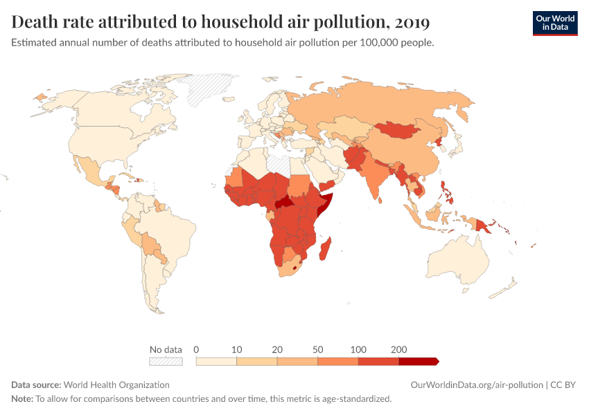 “Data Page: Death rate attributed to household air pollution”. Our World in Data (2026). Data adapted from World Health Organization. Retrieved from https://data-wdi-depsupdate.owid.pages.dev:8789/20260130-180113/grapher/death-rate-household-air-pollution.html [online resource] (archived on January 30, 2026).How to cite this data
