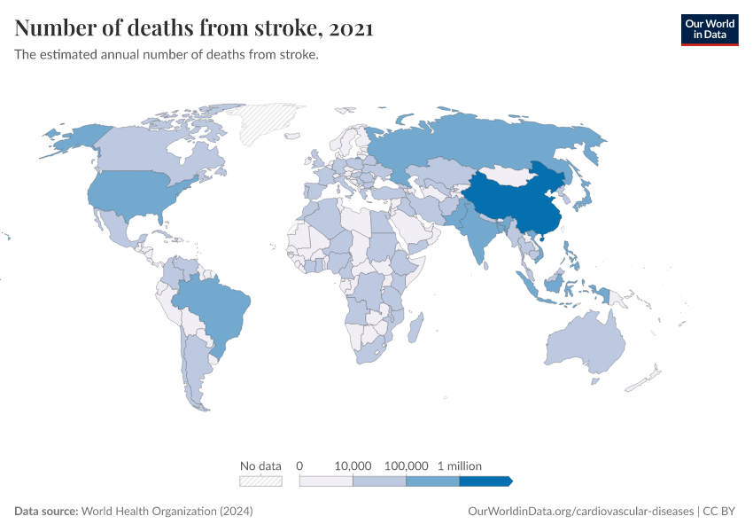 World Health Organization (2024) – with major processing by Our World in Data. “Number of deaths from stroke” [dataset]. World Health Organization, “Global Health Estimates” [original data]. Retrieved March 2, 2026 from https://data-wdi-depsupdate.owid.pages.dev:8789/20250909-093708/grapher/deaths-from-strokes-ghe.html (archived on September 9, 2025).