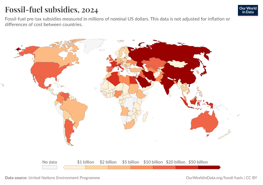 “Data Page: Fossil-fuel subsidies”. Our World in Data (2026). Data adapted from United Nations Environment Programme. Retrieved from https://data-wdi-depsupdate.owid.pages.dev:8789/20260130-180113/grapher/fossil-fuel-subsidies.html [online resource] (archived on January 30, 2026).How to cite this data
