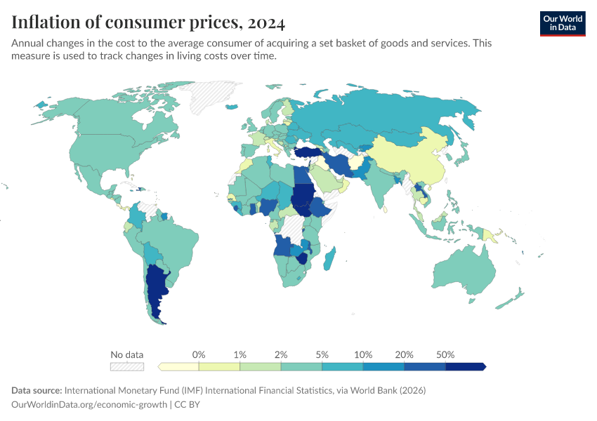 “Data Page: Inflation of consumer prices”. Our World in Data (2026). Data adapted from International Monetary Fund (IMF) International Financial Statistics, via World Bank. Retrieved from https://data-wdi-depsupdate.owid.pages.dev:8789/20260301-083443/grapher/inflation-of-consumer-prices.html [online resource] (archived on March 1, 2026).How to cite this data