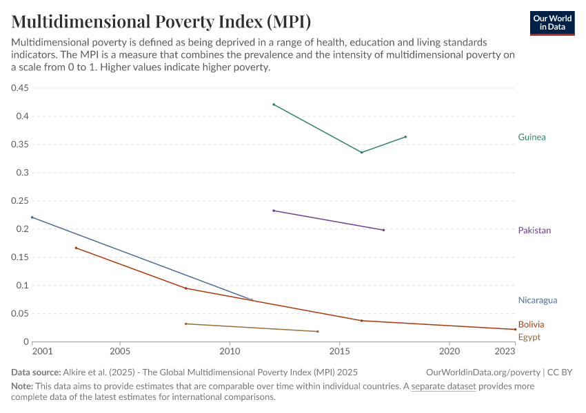 Alkire et al. (2025) - The Global Multidimensional Poverty Index (MPI) 2025 – with minor processing by Our World in Data. “Multidimensional Poverty Index (MPI) – Harmonized over time” [dataset]. Alkire et al., “Global Multidimensional Poverty Index (MPI) 2025” [original data]. Retrieved March 2, 2026 from https://data-wdi-depsupdate.owid.pages.dev:8789/20251229-175603/grapher/multidimensional-poverty-index-mpi-hot.html (archived on December 29, 2025).