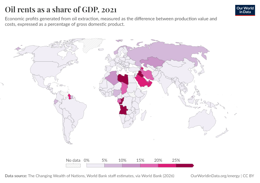 The Changing Wealth of Nations, World Bank staff estimates, via World Bank (2026) – processed by Our World in Data. “Oil rents as a share of GDP” [dataset]. The Changing Wealth of Nations, World Bank staff estimates, via World Bank, “World Development Indicators 125” [original data]. Retrieved March 2, 2026 from https://data-wdi-depsupdate.owid.pages.dev:8789/20260301-083443/grapher/oil-rents-as-a-share-of-gdp.html (archived on March 1, 2026).