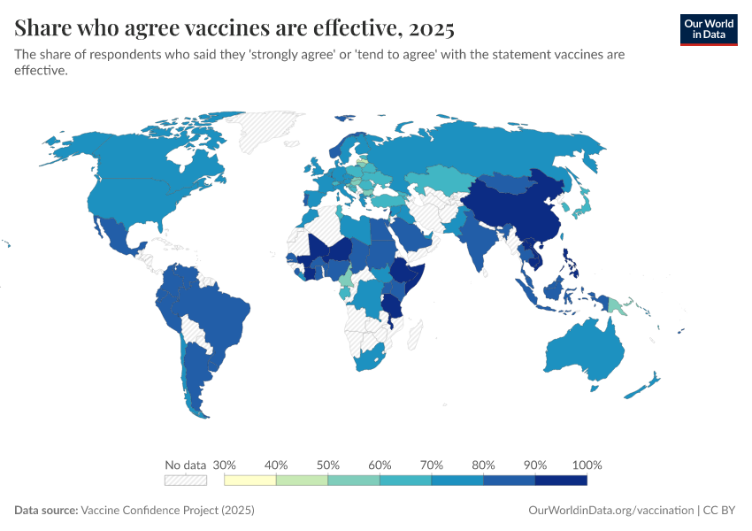Vaccine Confidence Project (2025) – processed by Our World in Data. “Share who agree vaccines are effective” [dataset]. Vaccine Confidence Project, “Vaccine Confidence Index” [original data]. Retrieved March 2, 2026 from https://data-wdi-depsupdate.owid.pages.dev:8789/20250909-093708/grapher/share-who-agree-vaccines-are-effective.html (archived on September 9, 2025).