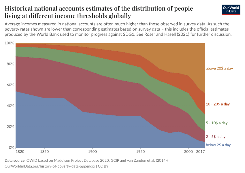 Joe Hasell (2019) - “Data appendix – The fight against global poverty: 200 years of progress and still a very long way to go” Published online at OurWorldinData.org. Retrieved from: 'https://data-wdi-depsupdate.owid.pages.dev:8789/20260128-140124/history-of-poverty-data-appendix.html' [Online Resource] (archived on January 28, 2026).BibTeX citation