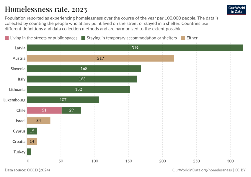 Bastian Herre and Pablo Arriagada (2024) - “Homelessness” Published online at OurWorldinData.org. Retrieved from: 'https://data-wdi-depsupdate.owid.pages.dev/homelessness' [Online Resource]BibTeX citation