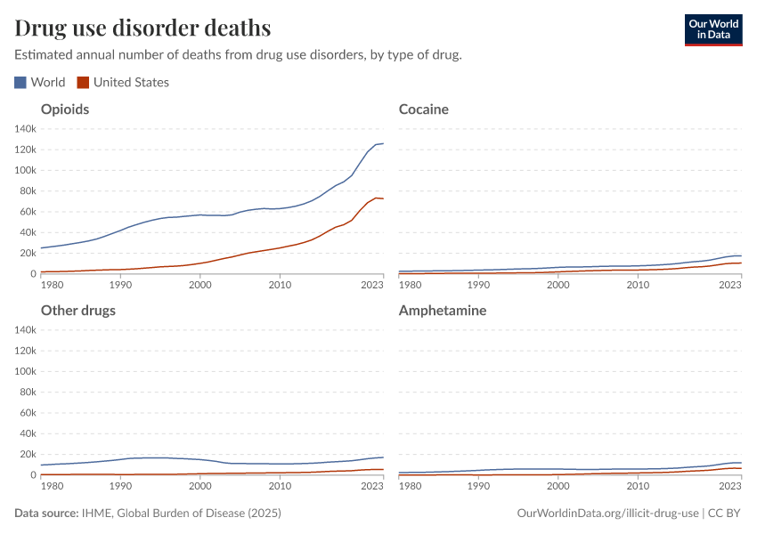 Hannah Ritchie, Pablo Arriagada, and Max Roser (2022) - “Opioids, Cocaine, Cannabis, and Other Illicit Drugs” Published online at OurWorldinData.org. Retrieved from: 'https://data-wdi-depsupdate.owid.pages.dev/illicit-drug-use' [Online Resource]BibTeX citation