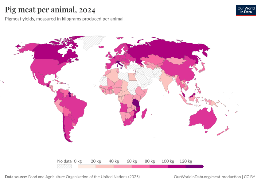 Hannah Ritchie, Pablo Rosado, and Max Roser (2019) - “Meat and Dairy Production” Published online at OurWorldinData.org. Retrieved from: 'https://data-wdi-depsupdate.owid.pages.dev/meat-production' [Online Resource]BibTeX citation