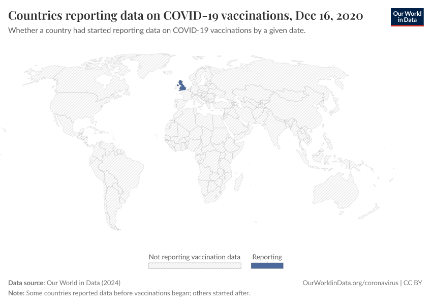 You can see how this evolved over time by clicking on the “Play timelapse” button, or from the line chart, which both show how more and more countries began vaccinating and reporting this data over time.