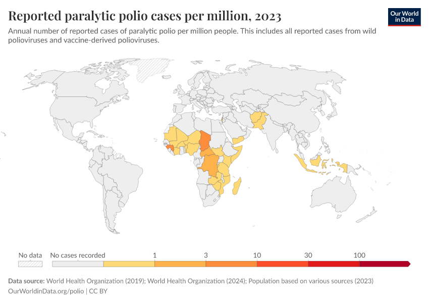 Saloni Dattani, Fiona Spooner, Sophie Ochmann, and Max Roser (2022) - “Polio” Published online at OurWorldinData.org. Retrieved from: 'https://data-wdi-depsupdate.owid.pages.dev/polio' [Online Resource]BibTeX citation