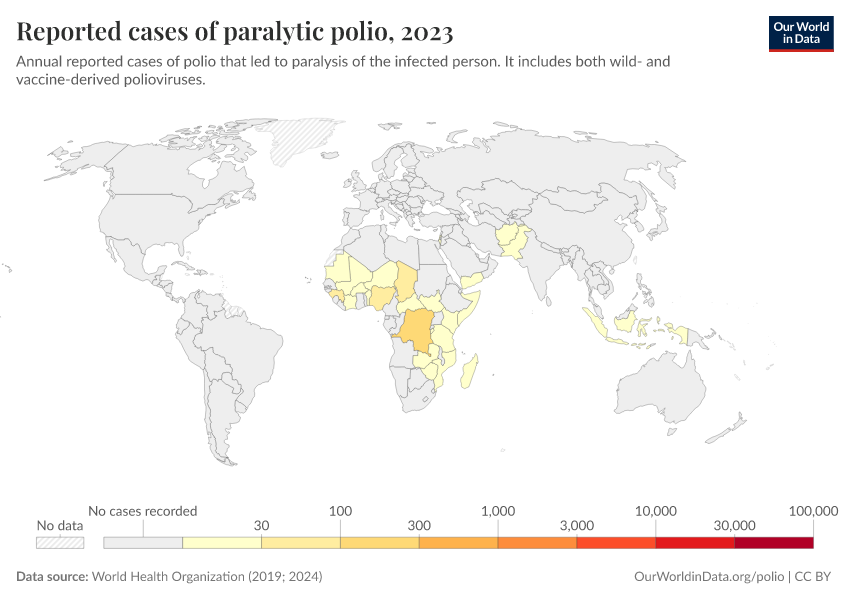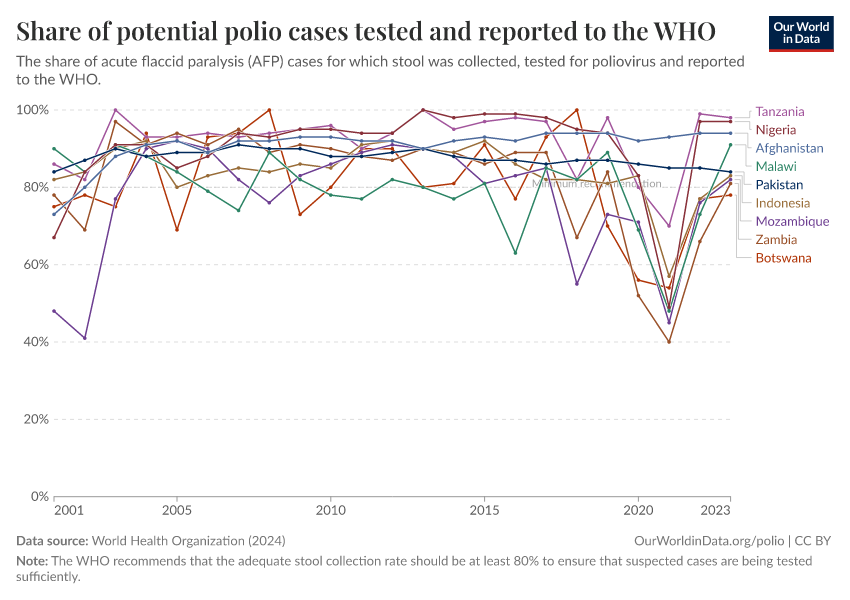 Saloni Dattani and Fiona Spooner (2022) - “We need more testing to eradicate polio worldwide” Published online at OurWorldinData.org. Retrieved from: 'https://data-wdi-depsupdate.owid.pages.dev:8789/20260119-065148/polio-testing.html' [Online Resource] (archived on January 19, 2026).BibTeX citation