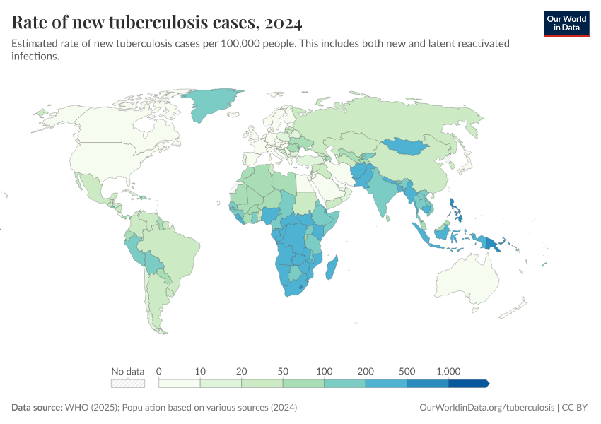 Saloni Dattani, Fiona Spooner, Hannah Ritchie, and Max Roser (2023) - “Tuberculosis” Published online at OurWorldinData.org. Retrieved from: 'https://data-wdi-depsupdate.owid.pages.dev/tuberculosis' [Online Resource]BibTeX citation