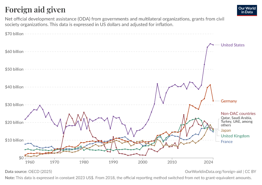 Simon van Teutem and Pablo Arriagada (2025) - “What is foreign aid? How “Official Development Assistance” is measured” Published online at OurWorldinData.org. Retrieved from: 'https://data-wdi-depsupdate.owid.pages.dev:8789/20260223-070107/what-is-foreign-aid.html' [Online Resource] (archived on February 23, 2026).BibTeX citation